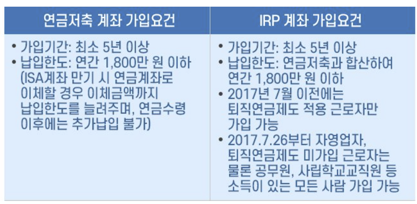 - 퇴직연금(IRP) 추가 납입은 근로자만 가능, 자영업자는 연금저축만 가입 가능