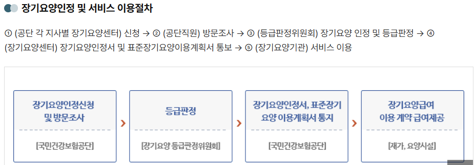 - 등급 판정: 방문 조사 → 등급판정위원회 심의 → 결과 통보