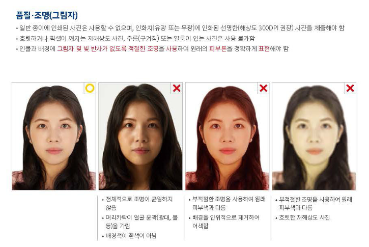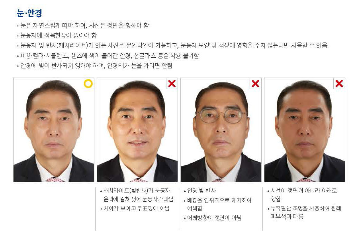 - 전문 사진관에서 "여권 사진 규정에 맞춰 찍어주세요" 라고 요청하시는 것이 안전합니다.