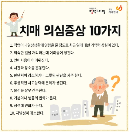 일부 지자체에서는 무료 치매 검진을 지원하고 있으니, 가까운 보건소에 문의해보는 것이 좋습니다.