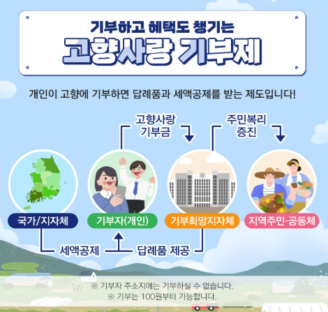 고향사랑기부제는 기부를 통해 고향을 돕고, 답례품과 세액공제 혜택까지 받을 수 있는 좋은 제도입니다.